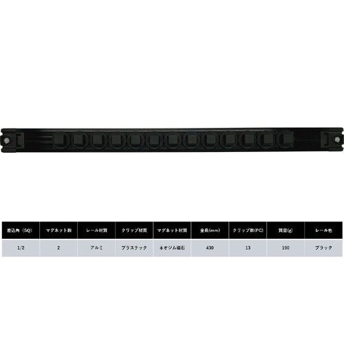 | 注意事項 | ※磁力が強力なため、磁気の影響を受けやすい機器類の近くで使用しないでください。レールは非常に強いマグネットなので、指等を挟まないよう注意してください。ソケットは付属しません。 |