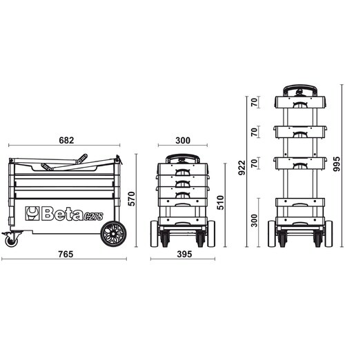 車載等での持ち運びに便利な折りたたみ式のツールトロリーです。 |