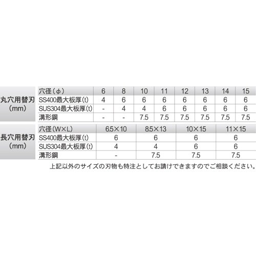 電源(V):AC100(50/60Hz) | 質量(kg):7.7 | フトコロ(mm):25 | 最大穴あけ能力(mm):【SS400相当/SUS3…