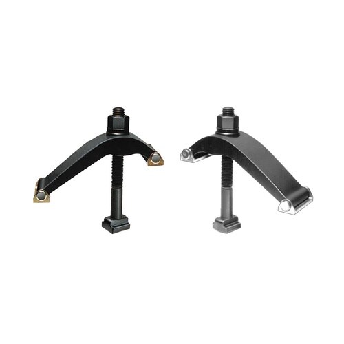 ■クランプの高さは自在に調整できます。安定したクランプ作業ができます。■クランプ面の両端にスイベルパッドが付属され、機械のベッド・加工物の損傷を防ぎます。 |