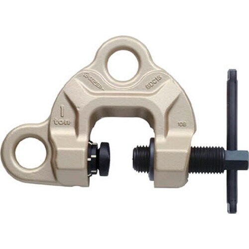 ■スクリューと円弧状カム(特殊スプリング式)の締め付け機構で無負荷状態でもクランプは確実なグリップを保持し負荷中の耐振性も抜群。■締め付け確認マークは蓄光塗装で視認性抜群。■吊上げ・吊下げ・横引き・反 |