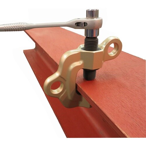 ■横吊り使用時にネジが上部(作業者側)に配置されているので締め込み作業が容易。(頭上の梁等への取付時にも作業者側で締め込みが可能)■スクリューと円弧状カム(特殊スプリング式)の締め付け機構で無負荷状態 |