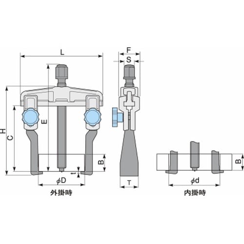 商品タイプ:標準 | 被引抜き物の大きさ(mm):25ー120(外掛時の外径D)/80ー180(内掛時の内径d) | 被引抜き物の大きさd1(mm):…