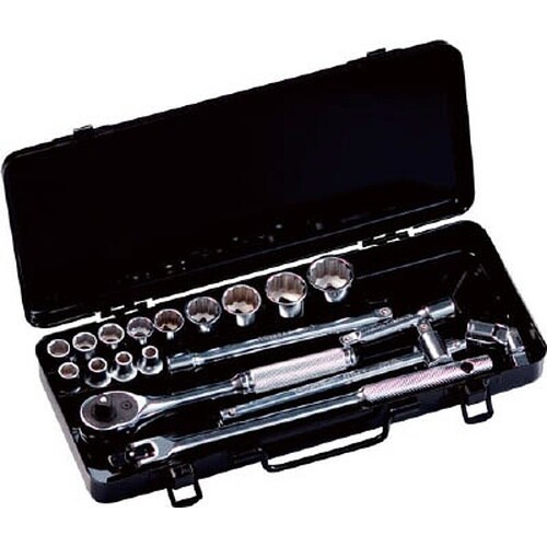 差込角(mm):9.5 | セット品(点):19 | 質量(kg):2.4 | 鋼製ツールボックスサイズ(mm):305×123×42 | 単位:1セ…