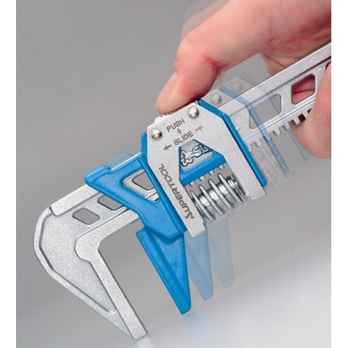 ■ワンプッシュ早送り機構でスピーディな操作。■モンキレンチに比べて、口開きが大きく用途が広範囲。 |