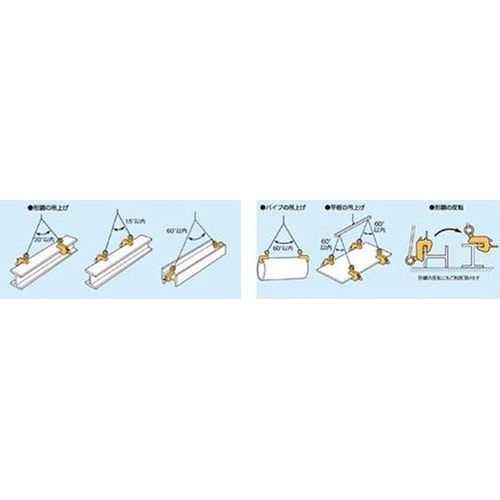 ■スプリング式締め付けロック機構で、無負荷状態でも、クランプは確実にグリップ。■取付、取外しが安全かつ容易な取手付。■構造用形鋼(H形、I形、T形、L形鋼等)や平鋼板の横(水平)吊クランプ。 |