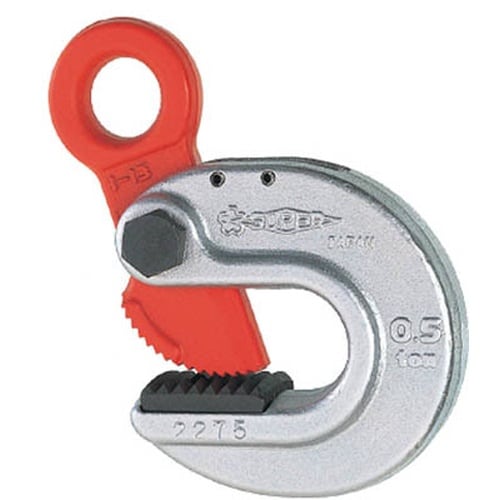 ■形鋼を吊った場合ほぼ水平になるので作業性がよい。■バネの働きにより、クランプを取り付けたとき手で支え持つ手間は不要。また無負荷状態でもクランプは外れない。■力学的に理想的なデザインのため小型・軽量で |