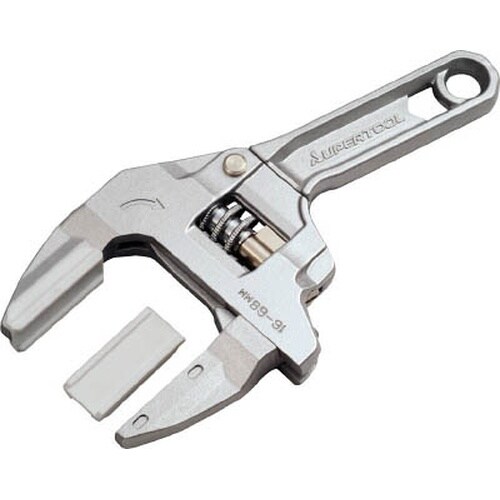 ■ラチェット機構式ワイドタイプ。■装飾衛生配管のナットに傷をつけないアルミ合金製。■軽量、コンパクト、ワイドタイプで狭い箇所での作業に最適。 |