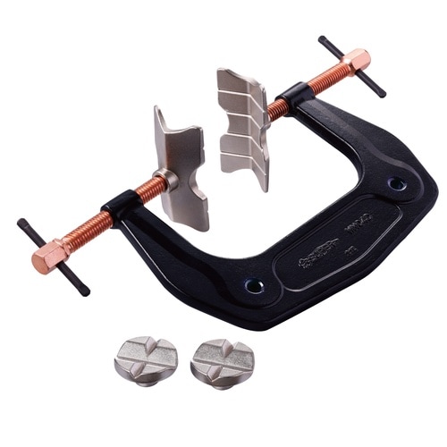 ■クランプのふところが深くなって、さらに溶接作業が効率化。■片側のアダプタは基準側となっており、傾きを抑え固定し易い構造です。■2種類のアダプタを付け替えることにより、あらゆるクランプ作業が出来ます。 |