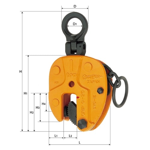 ■鋼板等のタテ吊りを主とした、吊り方向を拡げた軽量タイプのクランプ |