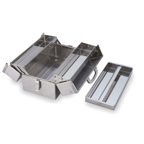 ■耐食性に優れたオールステンレスツールケース。■ステンレス部品や工具の保管に最適。■取り出し可能な中皿トレー付。 |
