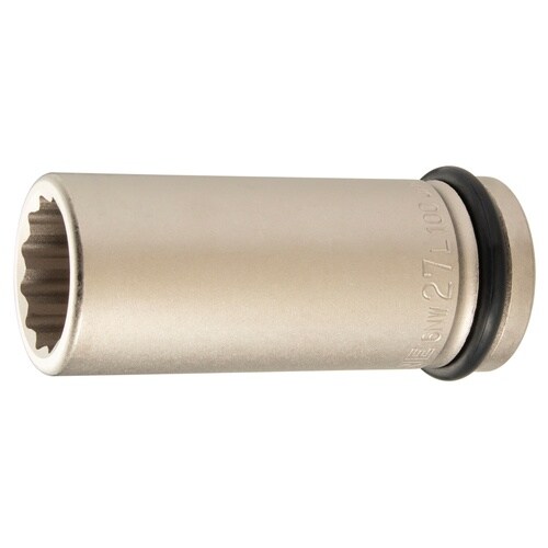 ■外観品質と防錆力の向上を図った無電解めっき仕様のインパクト用ロングソケット。■12角部ストロングドライブ。 |