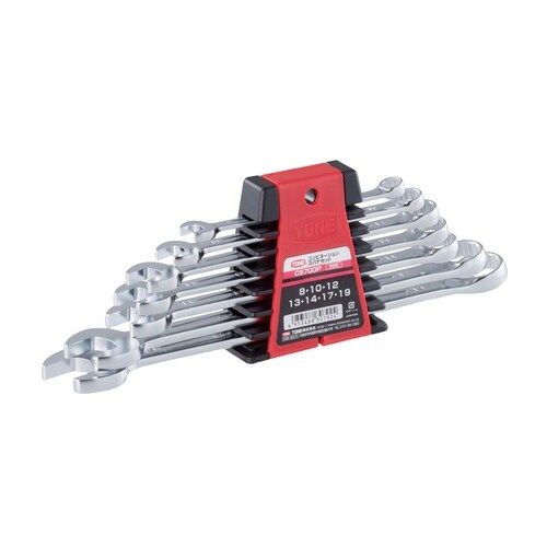 ■スパナのスピードとめがねレンチの強さを兼ね備えているのがコンビネーションスパナです。■仮締めをスパナ側で、本締めをめがね側でというように1本で2役の機能工具です。■モデルチェンジで、さらに使いやすく |