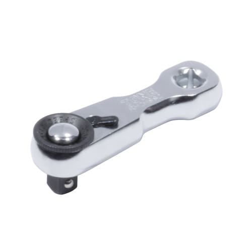 ■手のひらサイズラチェットハンドル。スピンナハンドルと組み合わせて狭い所での作業に最適。■ソケットホールド機構付。ワンプッシュ操作でソケット交換ができます。 |