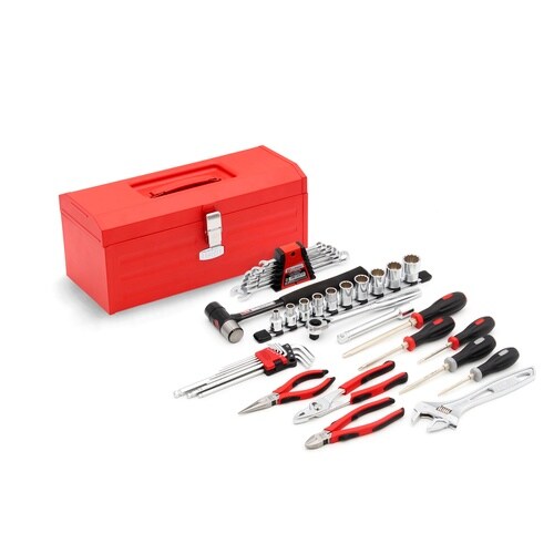 ■強度抜群の金属製ケースツールセット■ハンドルをたたむと天面がフラットになるため荷物を上に載せることも可能。■中皿付きで小物の整理整頓に最適。 |