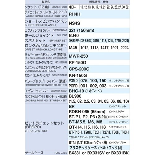 | 注意事項 | ※■ケースから工具を出し入れする時は、手を挟み込まないように注意してください。 |