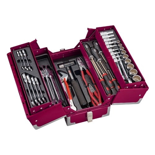 ■充実の内容品・定番のツールセット。■ヘキサゴンソケット、ラチェットメガネレンチが含まれた産業機械の整備に適した標準セット■限定「ラズベリー」仕様 |