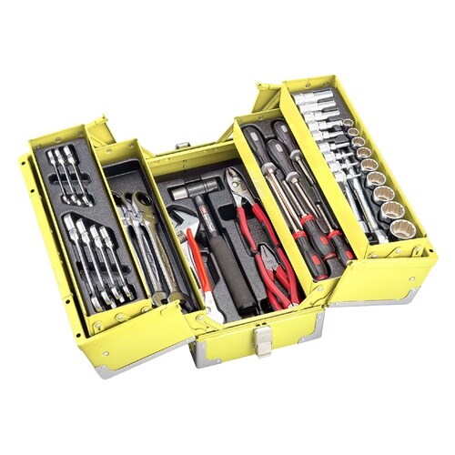 ■充実の内容品・定番のツールセット。■ヘキサゴンソケット、ラチェットメガネレンチが含まれた産業機械の整備に適した標準セット■限定「レモンイエロー」仕様 |