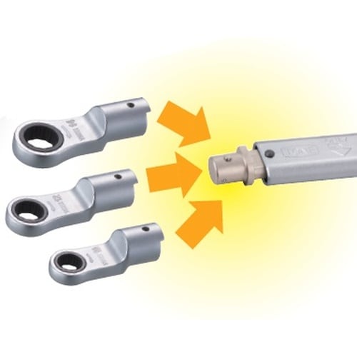 ■めがね部がラチェット機構なので抜き差し不要。高さが低く、スペースが狭い所に有効です。■差替式。 |