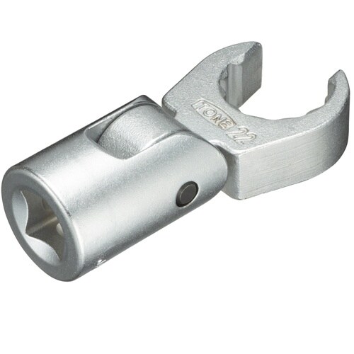 ■業界初の首振機構付クロウフットレンチです。首振角度を自由に設定できるので、今まで届きにくかったボルト・ナットにもしっかりアクセスできます。■エアコンや油圧機器などの各種配管、自動車のセンサー類の締付