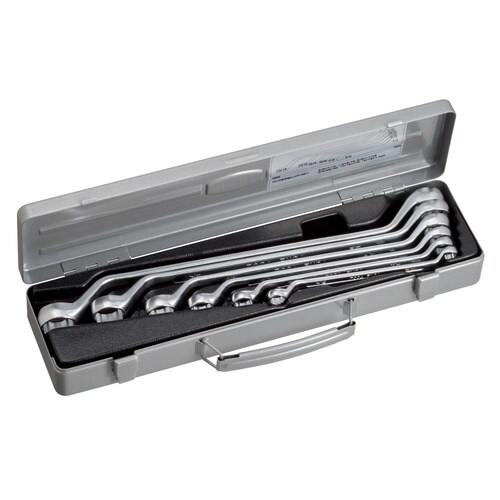 ■頑丈な梨地トレー付きのメタルケースに、ロングめがねレンチセット(45°)をセット。