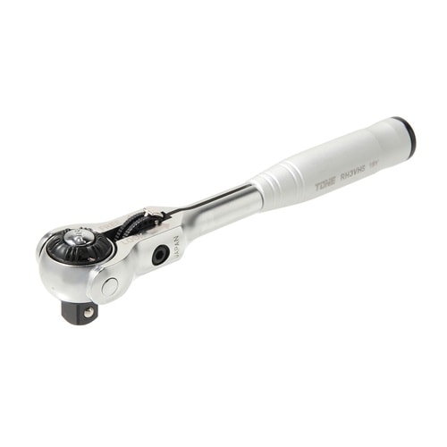 ■72枚歯に対して2つのセグメントカムにより歯数144枚相当を実現(送り角2.5°)。■ヘッド部はロック機構により自在に角度の調節ができます。■グリップ部はアルミ製で軽く、ショートタイプで作業性が良好 |