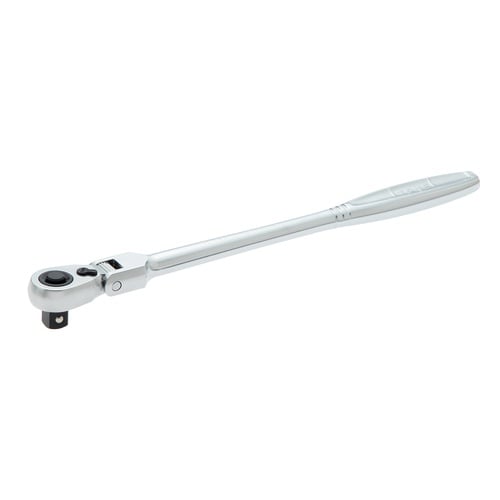 ■72枚歯で送り角5°。ラチェット頭部の可動は15度づつの角度調節できます。握りやすいハンドル形状。ワンプッシュ操作でソケット交換可能。■グッドデザイン賞受賞。 |