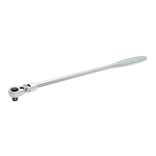 ■72枚歯で送り角5°。ラチェット頭部の可動は15度づつの角度調節できます。握りやすいハンドル形状。ワンプッシュ操作でソケット交換可能。■ロングサイズのため手が届きづらい箇所の作業に最適。■グッドデザ |