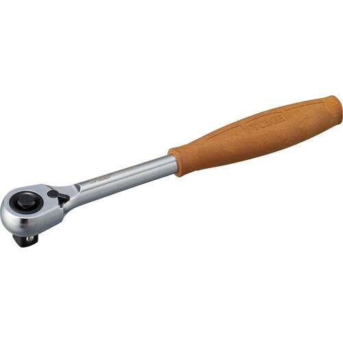 ■木のような質感、心地よい手触り。油矢汗が付いても滑りにくいグリップ。ワンプッシュ操作でソケット交換ができます。 |