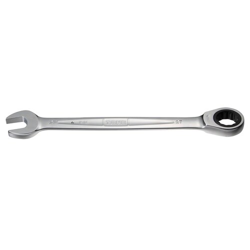 二面幅寸法(mm):27 | ギア歯数:104 | 全長(mm):357 | 厚み寸法(mm):10.5(スパナ部)/15.5(めがね部) | 重量(…
