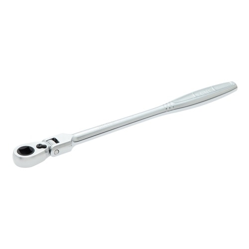 ■凹タイプのラチェットハンドル。72枚歯で送り角5°。ラチェット頭部の可動は15度ずつの角度調整できます。握りやすいハンドル形状。■グッドデザイン賞受賞。 |