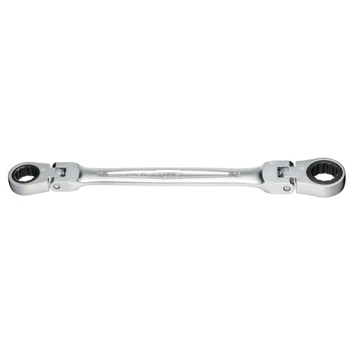 ■両側にラチェット機構のついためがね部を設け、1本で2サイズに対応。両ヘッドともに15度ずつの角度調整が可能なため、奥まった箇所での作業が可能。■グッドデザイン賞 受賞製品採用。 |