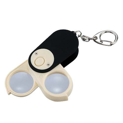 ■2枚重ねて使用すると10倍レンズに!■光源:LED高輝度ライト(白色)1灯。■アクリルレンズ。■オプション:電池LR726/SR726/AG2。 |