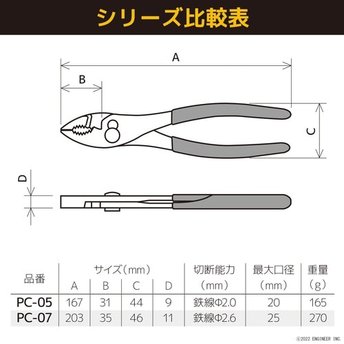 ■つかむ、切る、曲げる、さまざまな用途に使えるコンビネーションプライヤー。■つかむ物の大小によって、口の開き方が2段階に変えられます。■錆に強いメッキ仕上げ。 |