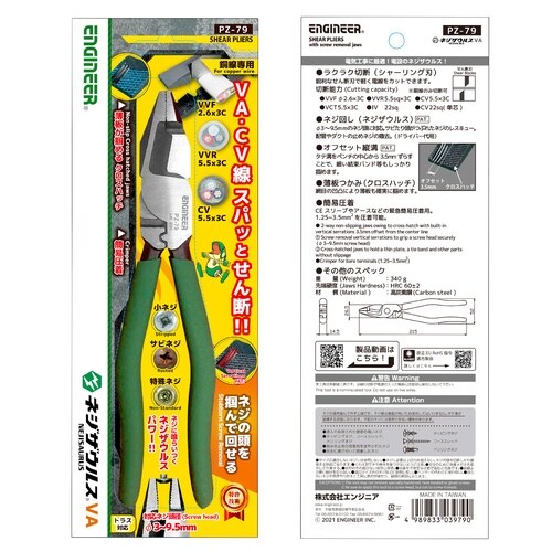 ■ネジ外し機能を搭載した、電設工事用の多機能ペンチ。■抜群の切れ味!VA線(Φ2.6×3C)をラクラク切ることができます。■鋭利なせん断刃で電線を軽くカットできます。■舐めネジ対応:ネジザウルス機能に |