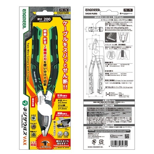 ■ネジ外し機能を搭載した、電設工事用の多機能ペンチ。■鋭利なせん断刃で、VVFφ2.6×3芯をラクラク切断できます。■潰れたネジ、錆びたネジを先端のタテ溝で掴んで回せます。■独自の先端形状により、頭の |