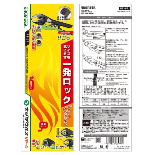 ■サイズを気にせず一発ロック、ネジザウルス機能付きオートバイスプライヤー。■オートアジャスト機能搭載で、開き幅の調整が不要です。■潰れたネジ、錆びたネジを先端のタテ溝で掴んで回せます。■独自の先端形状 |