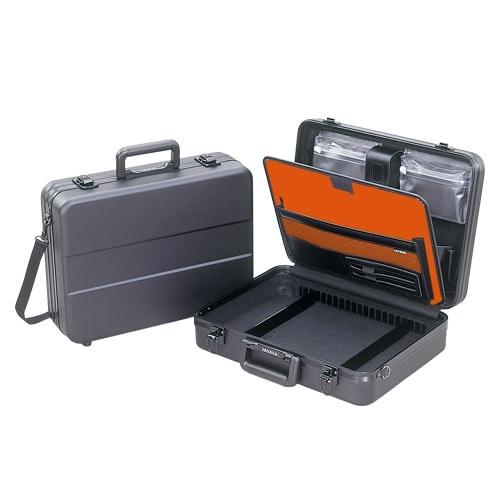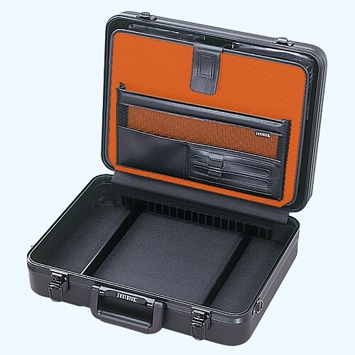 ■アタッシュケースの素材は軽さと丈夫さを兼ね備えたABS製です。■コンパクトサイズのアタッシュケースにW台紙がセットされています。■ツールパネルの裏面には便利な書類ポケットが付いています。■本体の収納 |