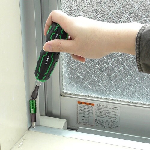 | 注意事項 | ※■電動工具を使用する際の注意:(1)数十秒連続して使うと関節部分が高温になるため、潤滑油等で冷却しながら作業してください。(2)首振り状態で使用する際は先端のブレに注意してください。(3)溝がないタイプのビットは保持できません。 |