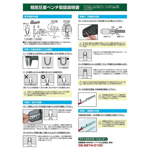 ■芯線バレルと被覆線バレルを個別に圧着するため、さまざまなサイズの端子に対応。■圧着時の視認性が高く、失敗が少ない。■軽量・コンパクト設計。■新ダイス形状によりバレル(ハネ)の高い端子にも対応。■4つ |