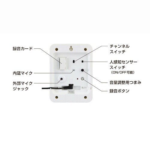 ■音声で、お知らせ、誘導、注意喚起するセンサー付音声案内機。■人感知センサーが人の接近を感知、音声を再生。■最大90秒×2チャンネルの音声録音が可能。■本体横のスピーカーからアナウンス。■本体前面に表 |