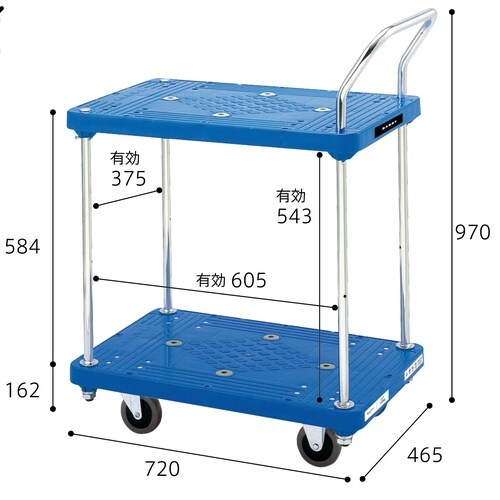 ■ダンディシリーズ■2段テーブル■ノイズレスキャスター■路面に跡が残りにくいグレーキャスター仕様。 |