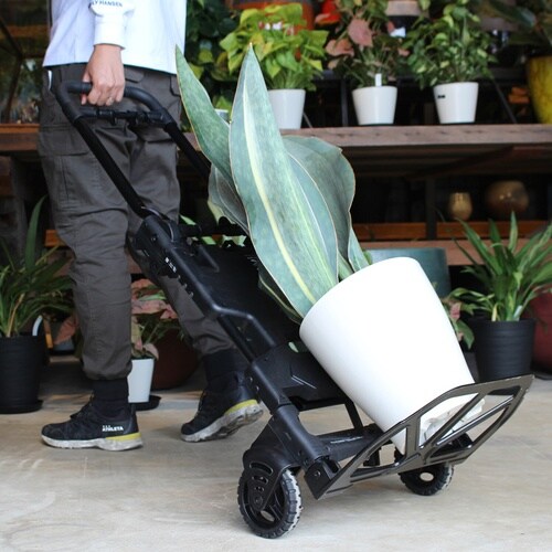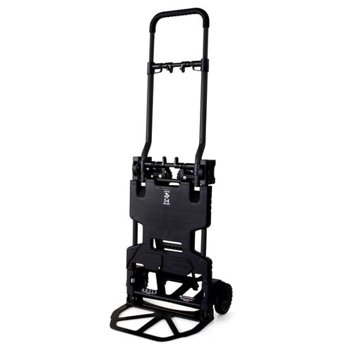 ■二輪台車と四輪台車を兼ね備えたフラットカート。二輪にすることで、狭い場所での小回りが効き、四輪にすることで、大型の荷物にも対応した運搬が可能です。■折りたたむと車輪も格納され薄さ130mmのコンパク |