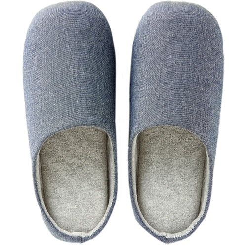 おしゃれなシャンブレー生地のルームスリッパです。内側にはパイル生地を使用しているので、足を包み込むような履き心地です。つま先上がりのフォルムで、お家にある小さな段差につまづきにくいです。 |