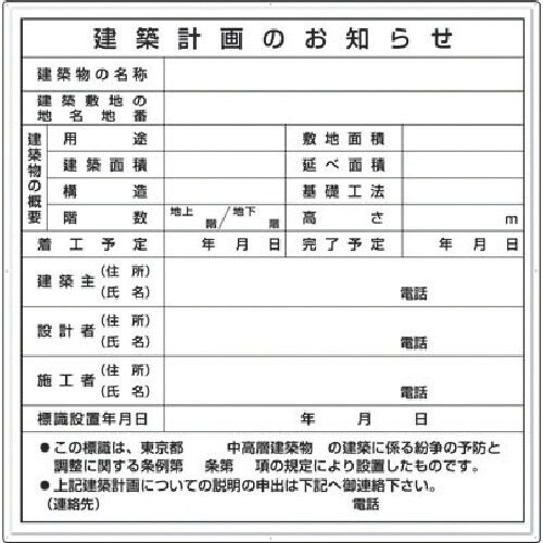つくし工房 つくし 法定表示板 建築計画のお知らせ 東京都用 119A 1枚 A07R-5148
