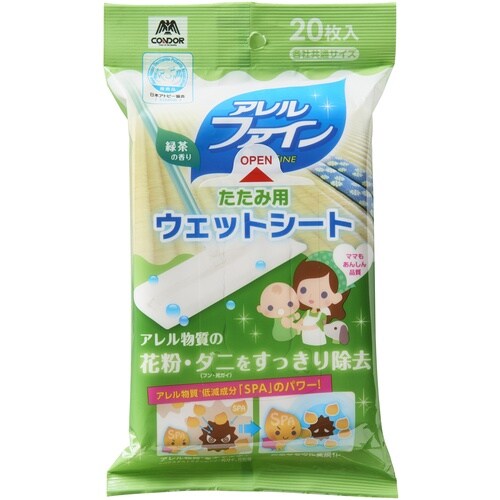 SPA配合シートで、アレル物質の花粉・ダニ(フン・死ガイ)をすっきり除去できます。たたみの拭き掃除に。 |