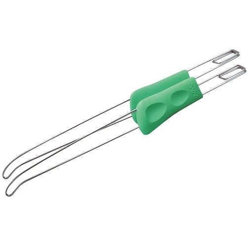 菜箸にトングの機能をつけた新しい調理器です。柔軟性のある柔らかいワイヤーでつかみやすいです。食材を4点で抑える安定のつかみやすさです。先端形状が細いので食材にさっと入りやすいです。 |