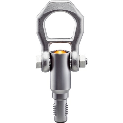 ボタン操作で着脱が簡単な吊り金具です。アイボルトの代用に。頻繁にアイボルトの着脱を行う作業。製品、部品、冶具、金型の運搬。アイボルトの代用に。 |