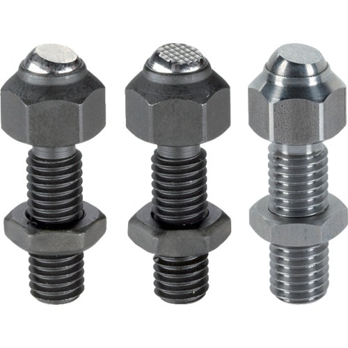 ボールの反転防止付高さ調整タイプの揺動パッドです。ストッパー、位置決め、サポート、スラストパッドなどの用途に、またクランプ・エレメントの付属品として。