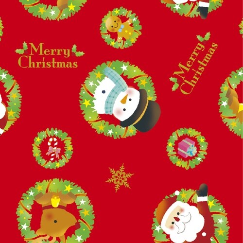 ファンシーなクリスマス柄の赤色の包装紙です。